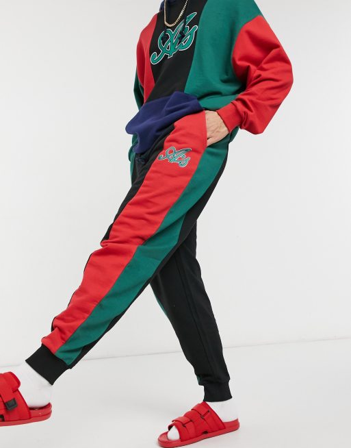 ASOS Actual co-ord oversized trackies in black with green and red colour block cut and sew