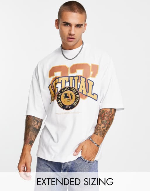ASOS Actual oversized t-shirt with front boucle logo in white
