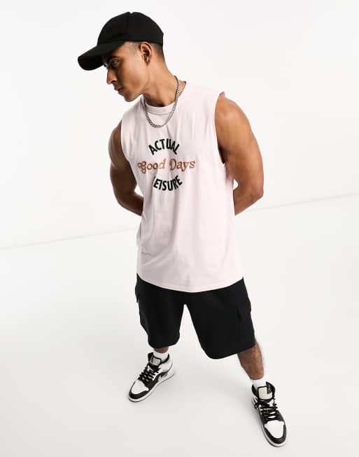 ASOS Actual relaxed singlet with good days front embroidery in pink