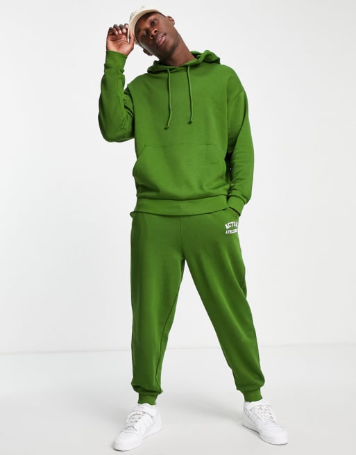 ASOS Actual set with athleisure back logo print in green
