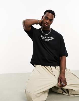 ASOS Dark Future oversized t-shirt with small logo chest print in black