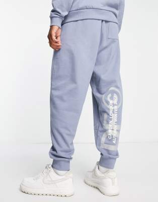 ASOS Dark Future relaxed trackies with logo print in slate blue (part of a set)