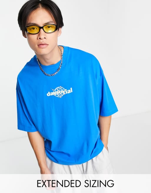 ASOS Daysocial oversized t-shirt with globe logo in bright blue
