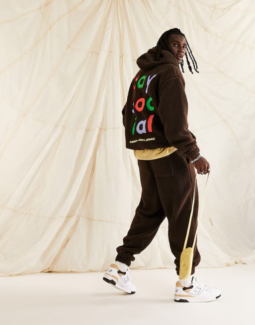 ASOS Daysocial set oversized in teddy borg with large back logo embroidery in brown