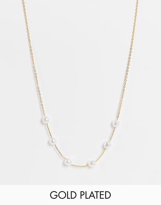 ASOS DESIGN 14k gold plated necklace with pearl detail