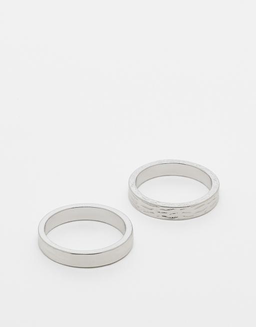 ASOS DESIGN 2 pack band ring set with texture in silver tone