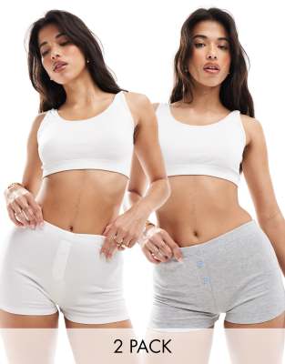 ASOS DESIGN 2 pack boxers with contrast stitching in white & grey