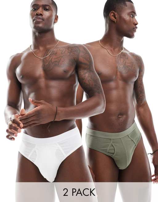 ASOS DESIGN 2 pack briefs in white and khaki