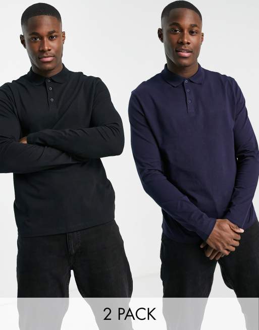 ASOS DESIGN 2 pack long sleeve jersey polo in multi