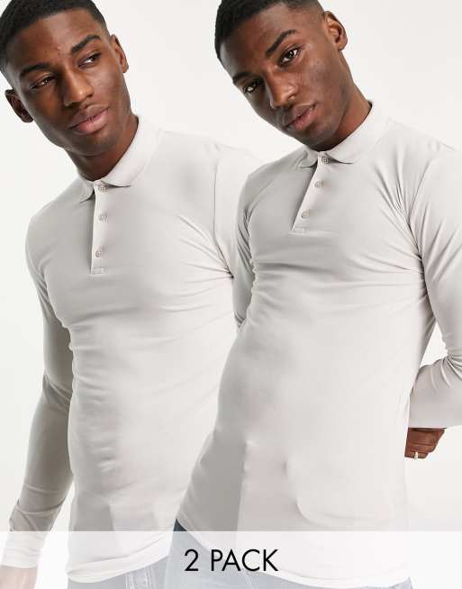 ASOS DESIGN 2 pack long sleeve muscle fit polo - MULTI