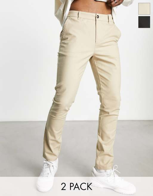 ASOS DESIGN 2 pack of skinny chinos in beige and black save
