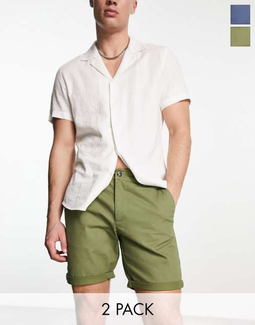 ASOS DESIGN 2 pack slim chinos in regular length with rolled hem in navy and khaki