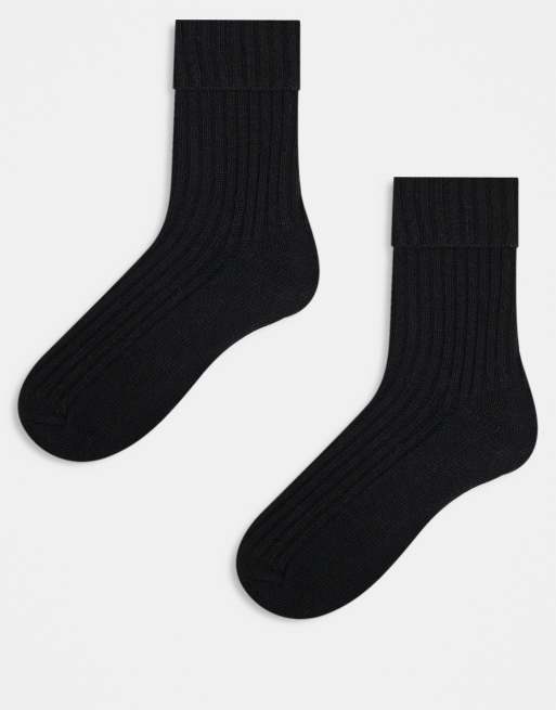 ASOS DESIGN 2 pack wool ankle socks in black