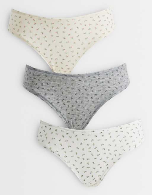 ASOS DESIGN 3 pack Brazilian briefs in cream and grey ditsy pointelle