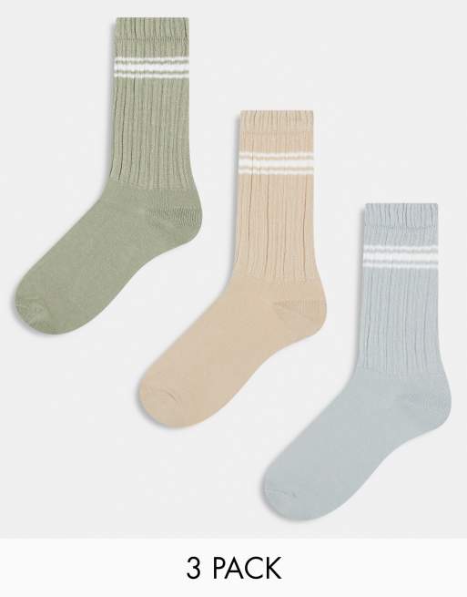 ASOS DESIGN 3 pack crew slouch ankle socks with stripes in neutrals