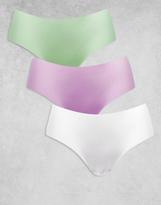 ASOS DESIGN 3 pack no VPL hipster shorts in white, lilac & pistachio