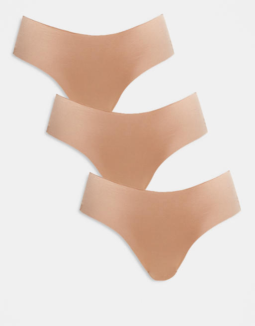 ASOS DESIGN 3 pack no VPL & lace brazilian briefs in beige
