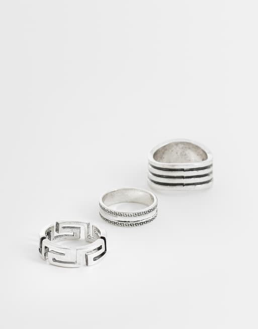 ASOS DESIGN 3 pack of Greek wave and layered ring in silver tone