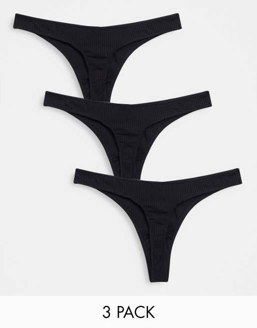 ASOS DESIGN 3-pack ribbed lingerie thongs in black