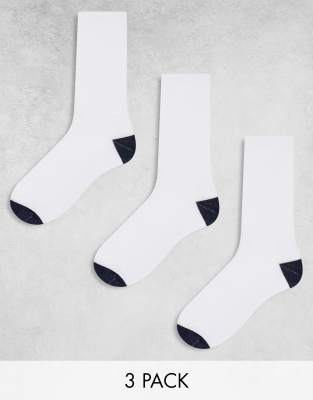 ASOS DESIGN 3 pack socks in white with navy heel and toe detail