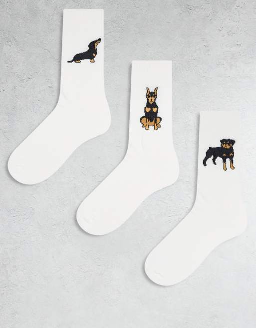 ASOS DESIGN 3 pack socks with dog graphic in white