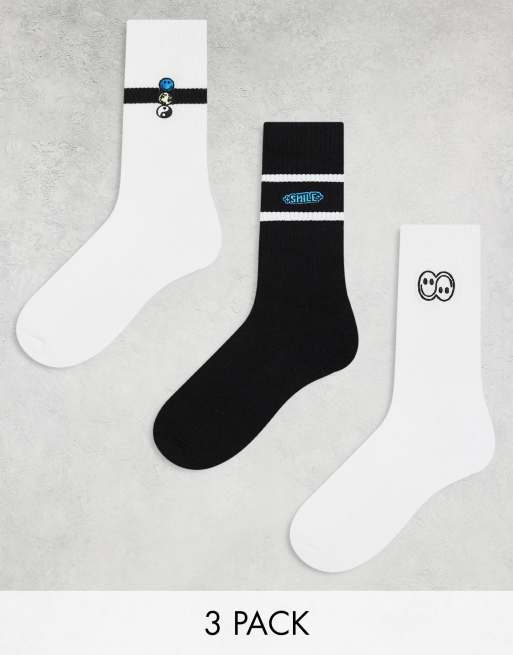 ASOS DESIGN 3 pack socks with smile embroidery in white