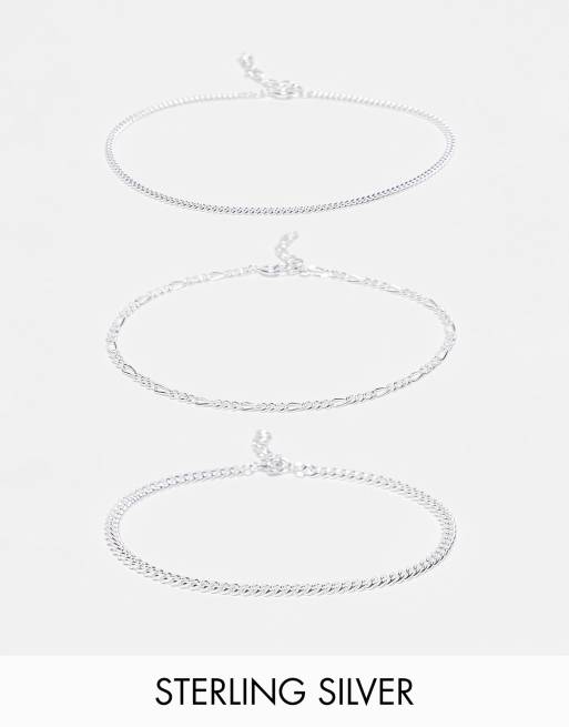 ASOS DESIGN 3 pack sterling silver curb and figaro chain bracelets