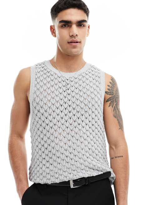ASOS DESIGN 3D stitch knitted singlet in silver mesh