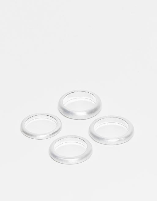 ASOS DESIGN 4 pack of plain band rings in worn silver