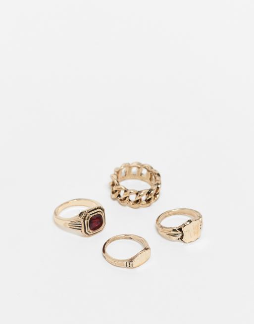 ASOS DESIGN 4 pack signet rings in antique gold tone