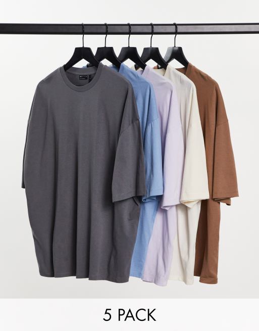 ASOS DESIGN 5 pack oversized t-shirt with crew neck in multiple colours