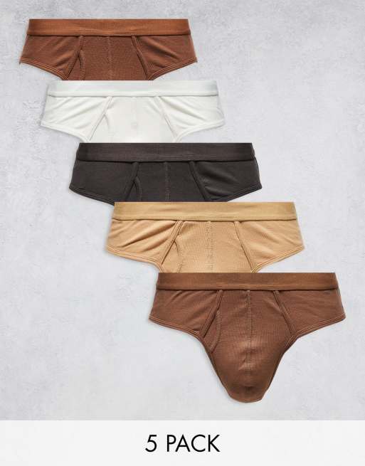 ASOS DESIGN 5 pack rib briefs in multiple colours