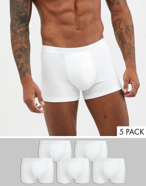 ASOS DESIGN 5 pack trunks in white organic cotton