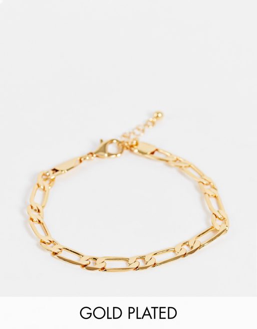 ASOS DESIGN 7mm figaro chain bracelet in 14k gold plate