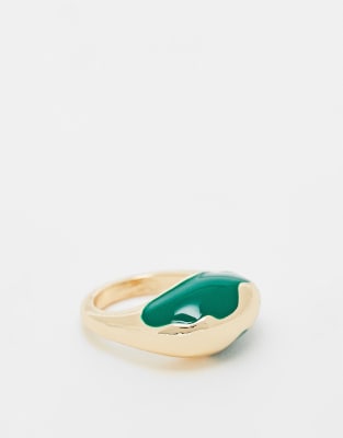 ASOS DESIGN abstract green enamel ring in worn gold tone