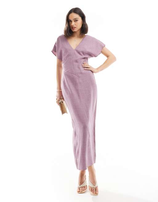 ASOS DESIGN angel sleeve plunge midi dress in lavender