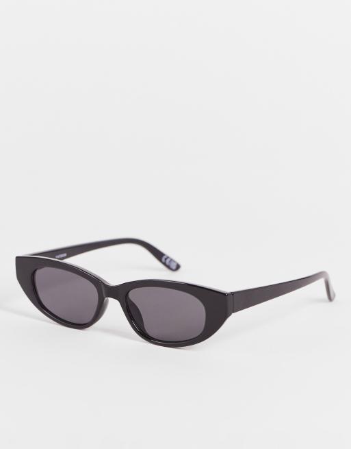 ASOS DESIGN angled slim cat eye sunglasses in shiny black - BLACK