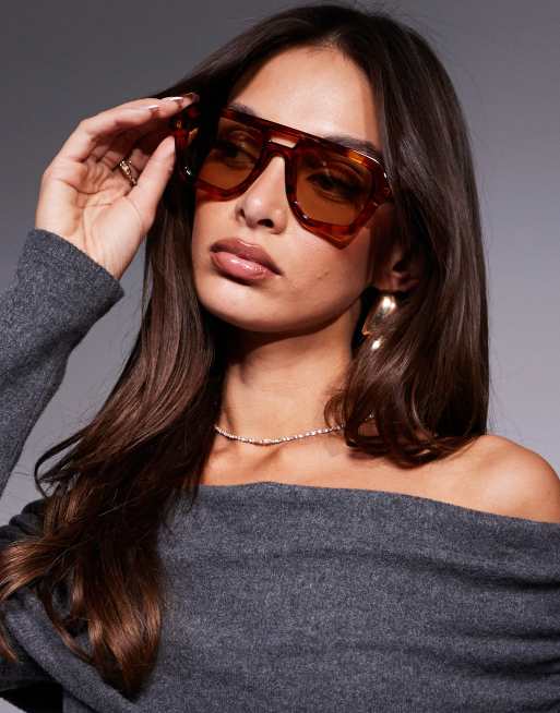 ASOS DESIGN angular aviator sunglasses in tort