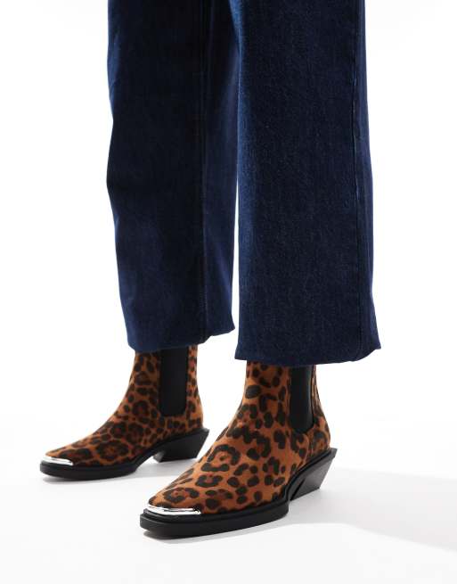 ASOS DESIGN Aruba flat western boots with toe cap detail in leopard