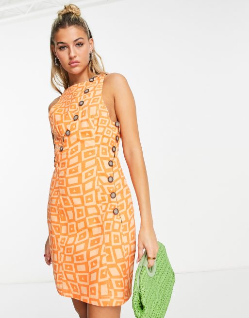 ASOS DESIGN asymmetric horn button twill mini dress in chequerboard print
