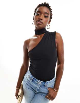 ASOS DESIGN asymmetric slinky bodysuit in black