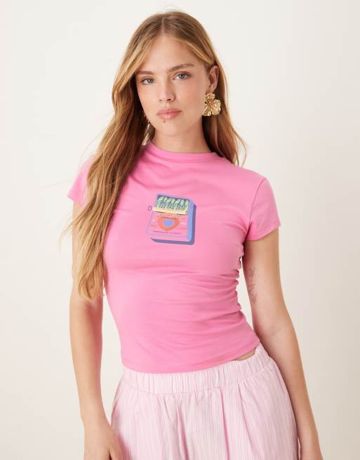 ASOS DESIGN baby tee with sardine graphic in pink