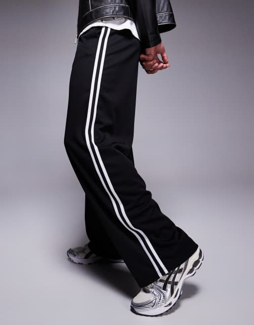 ASOS DESIGN baggy balloon trackies with side tape in black