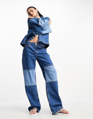 ASOS DESIGN baggy jeans in blue patchwork (part of a set)