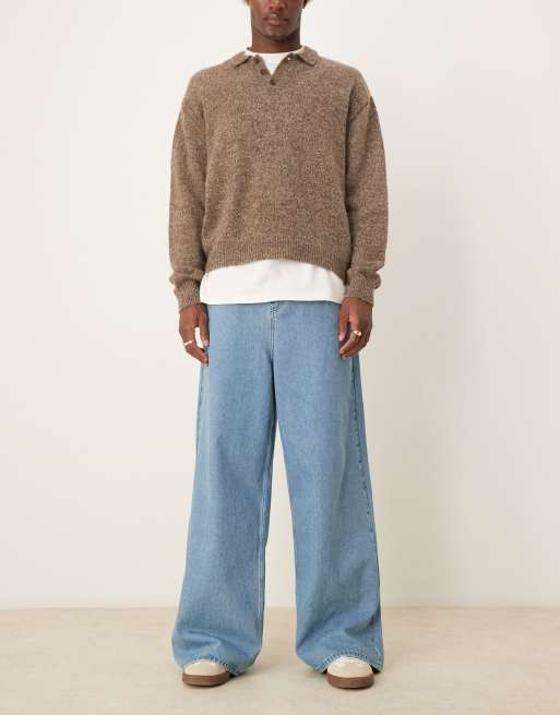 ASOS DESIGN baggy jeans with low rise and wide hem in heavy mid blue wash