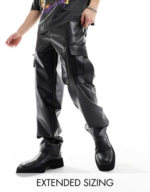 ASOS DESIGN baggy leather look cargo pants in black