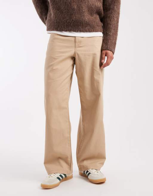 ASOS DESIGN baggy pants in beige with self tie belt
