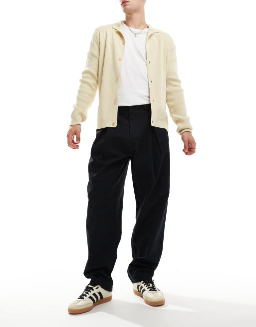 ASOS DESIGN balloon chinos with pleats in black