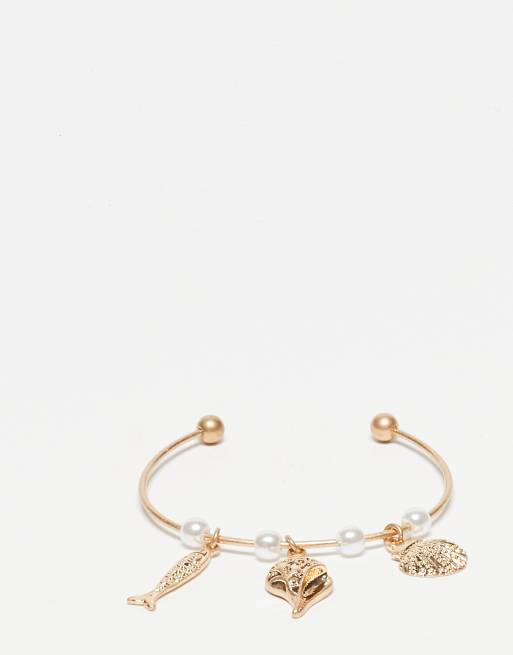 ASOS DESIGN bangle two-pack with sea-life charms in gold tone