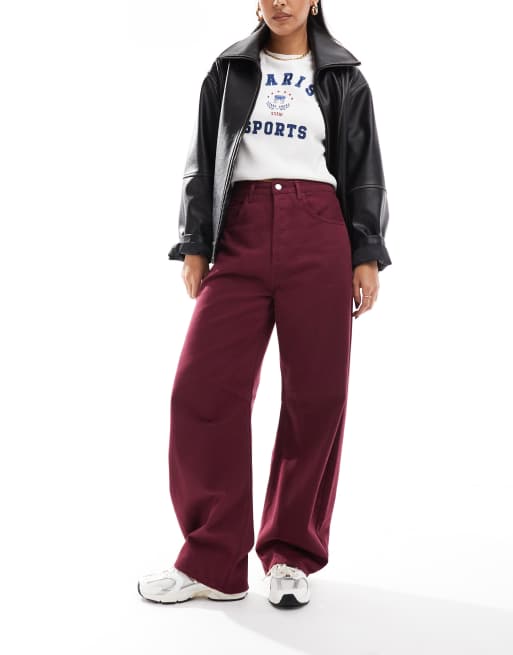 ASOS DESIGN barrel jeans in burgundy